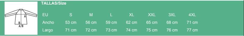 | Talla | S, M, L, XL, XXL, XXXL, 4XL |