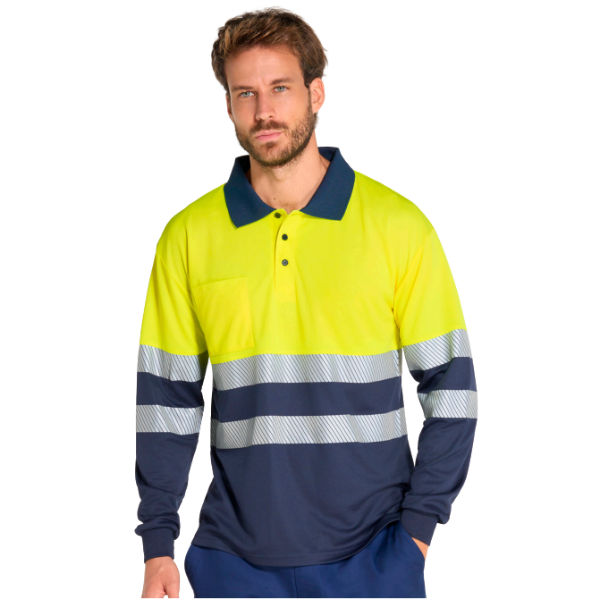 Polo de manga larga de alta visibilidad, transpirable y con tratamiento antibacteriano. Ideal para trabajo en exteriores.