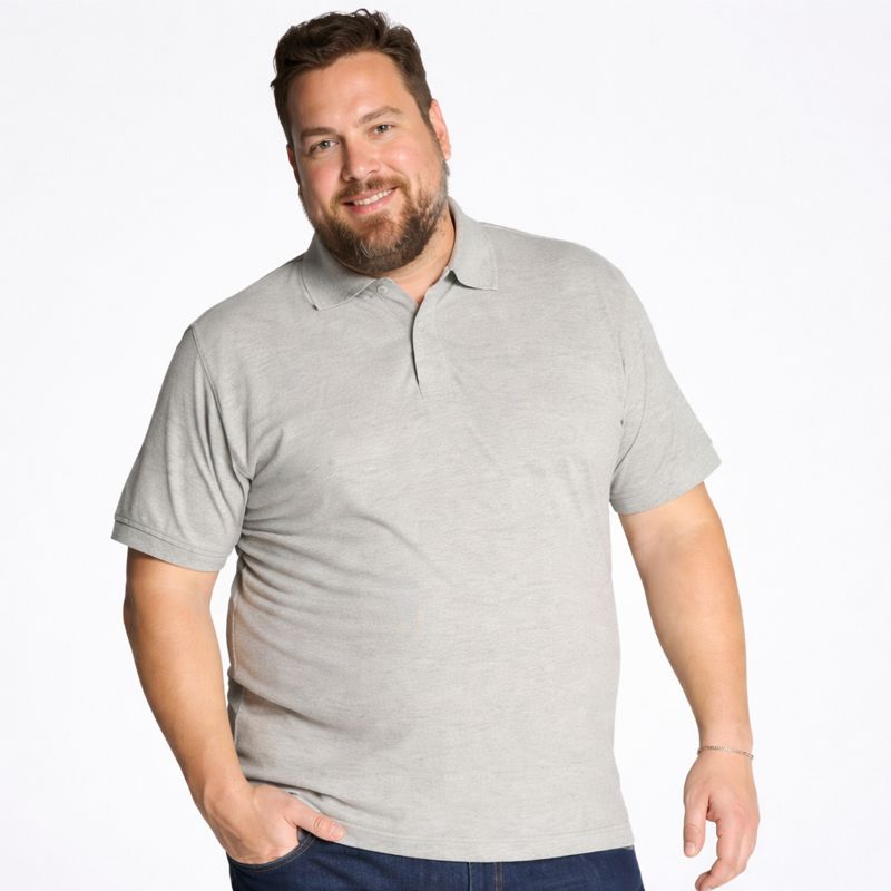 Polo piqué de hombre en algodón peinado preencogido, resistente y cómodo. Ideal para personalización textil y disponible en versión King Size.
