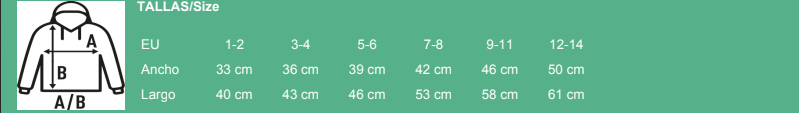 Incorpora capucha integrada, bolsillo canguro frontal y cremallera entera invisible y cubierta, lo que ofrece un acabado limpio y mayor comodidad para los niños. Los puños y el bajo en canalé 2x1 con licra garantizan un ajuste cómodo y duradero incluso con uso intensivo.