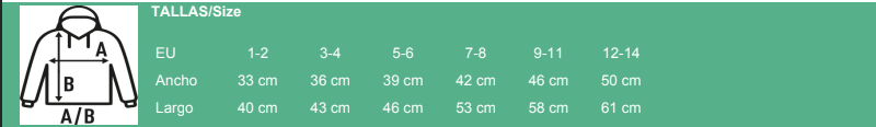 Incorpora capucha con cordón de ajuste a tono, bolsillo canguro frontal y canalé 2x1 con licra en puños y bajo, garantizando un ajuste cómodo y duradero incluso con uso intensivo.