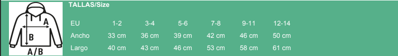 | Talla | 1 – 2, 12 – 14, 3 – 4, 5 – 6, 7 – 8, 9 – 11 |