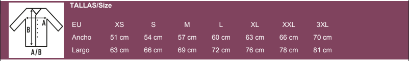 | Talla | XS, S, M, L, XL, XXL, XXXL |