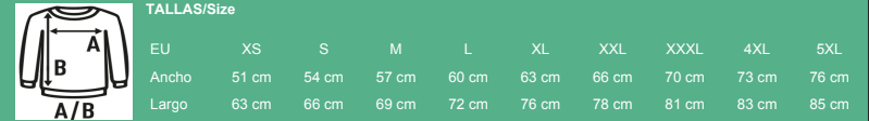 Está disponible en 61 colores y en un amplio rango de tallas que va desde la XS hasta la 5XL, adaptándose a todo tipo de públicos y necesidades. Es totalmente compatible con serigrafía, vinilo textil y transfer, ofreciendo acabados limpios y profesionales.