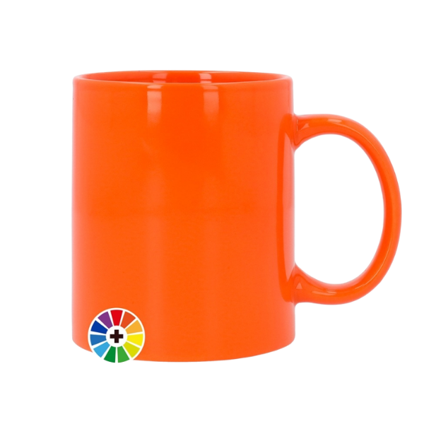 Taza de cerámica en color especialmente diseñada para personalización mediante DTF o DTF UVI. Ideal para imprimir diseños a todo color sobre superficies no sublimables, ofreciendo un acabado resistente, versátil y de gran impacto visual.